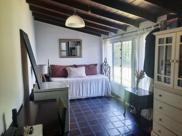 COMODIDADES: Hall de entrada - Living con chimenea y con pisos cerámicos - Comedor integrado al living - Espacio estar con vista al jardín - Cocina completa - Pasillo de distribución - Dormitorio principal en suite y con placards - 2 Dormitorios secundarios (uno de ellos tiene un ambiente que lo balconea) - 1 Baño completo.