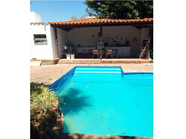 Exterior: Jardín parquizado - Pileta de 8x4 aprox. - Quincho con parrilla de aprox. 30m2 y con agua caliente (con termotanque independiente) - Lavadero y cuarto con baño - Depósito.