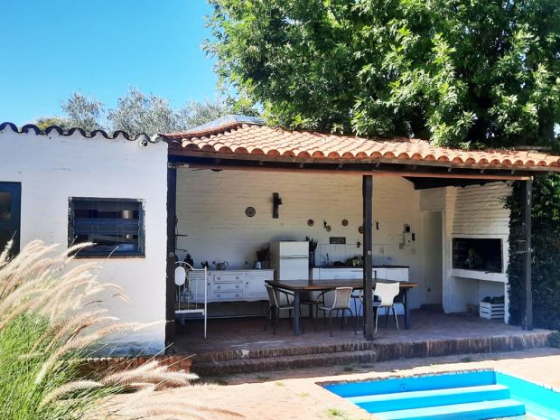COMODIDADES: Hall de entrada - Living con chimenea y con pisos cerámicos - Comedor integrado al living - Espacio estar con vista al jardín - Cocina completa - Pasillo de distribución - Dormitorio principal en suite y con placards - 2 Dormitorios secundarios (uno de ellos tiene un ambiente que lo balconea) - 1 Baño completo.